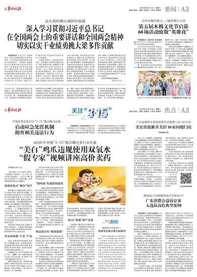 羊城晚报讯 记者吴珊报道:市场监管总局3月15日晚表示,针对中央广播电视总台“3·15”晚会曝光的“漂白的鸡爪”“增高营销的套路”等涉及市场监管领域的违法行为,市场监管总局迅速启动应急处置机制,部署开展执法行动,全力维护消费者合法权益,查处情况将及时向社会公布。