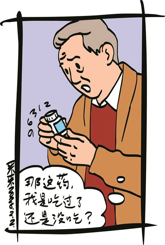 插图:采采 晨练回来,袁大爷刚打开药柜准备吃药,一眼瞥见药盒旁边放着的那张彩票。那是前几天陪着王老师去彩票投注站时,自己也顺便机选了3注。要不是现在看见,他早把这事忘到爪哇岛了! “不知中奖了没有?”他心里嘀咕着,捏着彩票进了书房,打开电脑跟那期的中奖公告一对,竟有一注中了4个红球和1个蓝球,按照规则,应该是中了10块钱。 嘿,花了6元,中了10元,感觉还是蛮划算的。他喜滋滋地从书房出来,再次打开药柜,可刚拿起降糖药,心里却咯噔一下:“这柜子……我刚才似乎打开过。那这药,我是吃过了还是没吃?”这可马虎不得,过量服用会导致低血糖,可不是闹着玩的,弄不好会出大事。 拿着药瓶,袁大爷僵在原地,一时没了主意。 没办法,他只好给在外跳广场舞的老伴打电话。不一会儿,老伴汗津津地赶回来,嗔怪他:“你呀你,真是老糊涂了,吃没吃药都记不清!”可埋怨归埋怨,她也一时拿不定主意。 电话打到儿子单位,儿子也无心上班,请假赶回家,可他也不是医生,对着药瓶干着急。 最后,只得求助在医院当护士的侄女。侄女刚下夜班,正跟女儿小叶子在外面吃早点,接到电话便赶了过来。他问袁大爷:“这次的药是哪天开的?” 他茫然摇头:“不记得了!” (魏青锋)