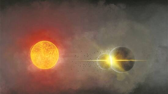□克莉斯汀 《天体物理学杂志》最近刊登的一项研究报告宣称,天文学家们实时捕捉到了一幕极为罕见的场景:在距离地球11000光年之外,有两颗行星发生了毁灭性的一场碰撞。这个最近被很多天文爱好者玩笑地称为“宇宙车祸现场”的场景,可能恰好能帮人类更好地理解太阳-地球-月球相互关系的形成过程。 旧数据分析有惊人发现 研究团队是在研究一堆恒星活动的旧数据时发现这一变数的。他们发现有一颗编号为Gaia20ehk的恒星,原本和太阳一样处于稳定燃烧的状态,但自2016年开始,它的亮度却出现了三次神秘的下降。到了2021年,它的光线甚至变得剧烈且不可预测。进一步的分析后,研究人员发现,导致这些变化的并非恒星本身,而是环绕在恒星周围的巨量岩石和尘埃组成的云团,它们的不规则行动挡住了恒星射向地球的光线,因此才让数据变得不可预测。 研究团队接着发现,这颗恒星的红外观测数据显示,当它的可见光暗淡的同时,红外光却急剧增强。这表明,遮挡物本身是炽热的,热到能发出强烈的红外辐射。对此,最有可能的合理解释就是——有两颗行星可能以极高的速度相撞、粉碎、蒸发,最终在它们环绕的这颗恒星周围化成了一片发光发热的碎石与尘埃环。 再回到最初的数据分析,研究人员推测,早期观测到的三次小幅亮度下降,可能正是两颗行星在最终毁灭前发生的数次擦边碰撞;后来一度的光线剧烈变化,则意味着发生了终极撞击,最终玉石俱焚。 换个角度发现新领域 科学家们推测,这片炽热的碎片云可能会在未来的漫长岁月里逐渐冷却、聚集,最终凝结成全新的行星天体,甚至可能形成一个类似“地球-月球”的双星系统——换个角度来说,研究者们观察到的这场可能已发生了数亿年的行星碰撞事件,也许就是地球形成过程中的一段“真实现场还原”。因为天文学家一直都有猜测,大约45亿年前,一颗被称为忒伊亚的原行星与原始地球相撞,抛射出的物质最终凝聚成了月球。 行星系统的形成是一个充满碰撞与合并的混沌过程。从地球观测者角度来看,直接观测到行星碰撞本身是极为困难的,这需要碎片云恰好从恒星前方经过,让它的光线更为明亮,另外,观测这样的碎片云变暗的过程可能要持续数年才能看出明显差异,所以这个现象也很容易被忽略。但正是科学家们持续不断、长达数十年的努力付出,让这一现象得以被深度挖掘,这样的“观星”绝对不是一件浪漫的事,却是人类理解地球与生命起源的最耐心的方式之一。