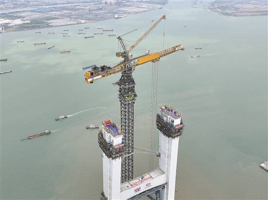 羊城晚报讯 记者王丹阳,通讯员粤交集宣、岳路建报道:26日11时许,粤港澳大湾区超级工程狮子洋大桥实现东、西主塔封顶,塔高342米,相当于110层楼的高度。 狮子洋大桥是狮子洋通道项目的关键控制性工程,是目前中国乃至世界上技术难度最大、建造工艺最为复杂的桥梁之一。主塔封顶后,这座横跨珠江口的双层悬索桥迎来了重要的建设节点。目前,大桥已开展索鞍吊装、猫道架设相关准备工作,计划下半年实现先导索过江。 狮子洋通道项目全长约35公里,双向8车道,连接位于珠江口东西两岸的广州市南沙区和东莞市虎门、沙田两镇。综合考虑周边城市经济发达程度高、航道密集和过江通道线位资源稀缺等因素,狮子洋通道选择了建设主跨2180米的悬索桥“一跨过江”,并采用上下双层16车道的设计方案。 据介绍,项目团队联合国内顶尖的设计、施工、制造、科研院所等单位,进行了35个课题研究,实现了多个方面的原创性突破,逐步形成了超2000米双层悬索桥的成套技术体系及标准,有力推动了我国超大跨径悬索桥的技术进步。 在粤港澳大湾区,有6条跨江跨海通道已建成通车。狮子洋通道建成后,将成为珠江口东西两岸融合发展的新通道,加速粤港澳大湾区交通基础设施“硬联通”。