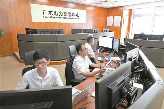电力交易员在广东电力交易大厅中进行交易组织工作 |