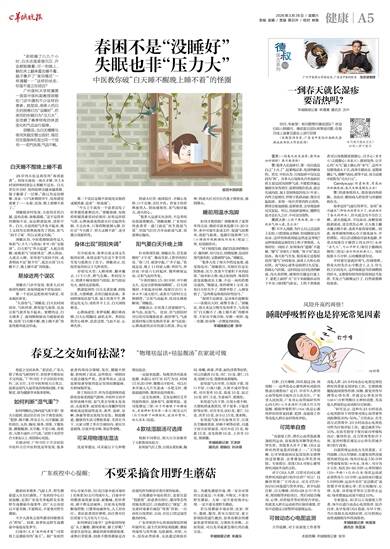 春夏之交雨水多,“老话说,广东人除了秋高气爽的时节,其他季节都有祛不完的湿。”广州市红十字会医院中医科二区主任、主任中医师梁天山笑言,湿邪是现代人最常见的体质问题,不易察觉,却为健康带来很多影响。