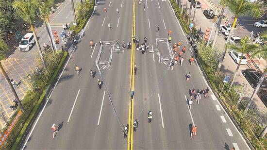 清远马拉松赛道一些路口设置穿行点,行人可“钟摆式过马路” 受访者供图 |