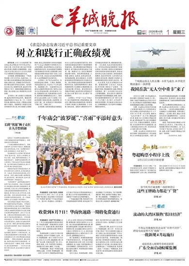 中共广东省委主管、主办 羊城晚报社出版      1957年10月1日创刊      2026年4月1日      丙午年二月十四      星期三      责编/徐雪亮 美编/黄国栋