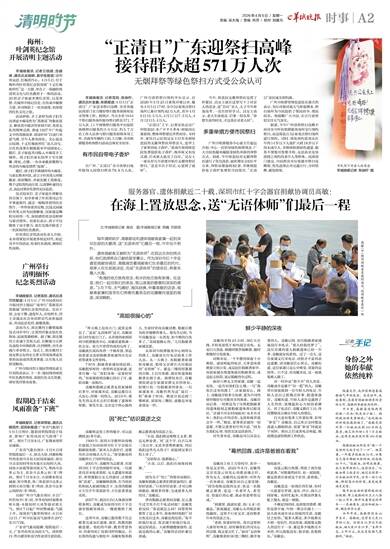 羊城晚报讯 记者高焓、张瑞柠,通讯员叶金鑫、张萌报道:4月5日“正清日”,广东迎来祭扫高峰,全省各级民政部门全力做好祭扫服务保障和安全管理工作。据统计,当天全省1644个祭扫服务场所接待