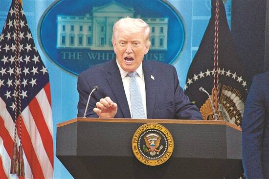 4月6日,特朗普在华盛顿白宫举行的新闻发布会上讲话 新华社发 |