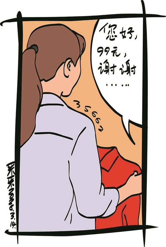 插图:采采 下了班,小枫去地铁站时,顺路逛了下附近的商场,经过服装店,见到门口挂着醒目的打折广告招牌。透过橱窗,可以见到中央挂着一排红色的衬衣。 “好喜庆的颜色!”小枫早就想买这个品牌的衣服,于是,她走了进去,挑选了一件合适的码数。试穿后感觉很满意,就走到柜台付款。 “您好,99元,谢谢!”售货员说。 小枫一愣,问:“打折后的价格不是59元吗?” 售货员礼貌地回答:“不好意思,这件是当季新品,不参与促销活动,还是原价99元,要不您再挑其他的款式?” 小枫看着售货员已经打包起来的衣服,她心中一动,答道:“算了,99就99吧。反正我很喜欢,没有折扣我也买了。” 高高兴兴结完账,小枫拎着新衣服出来,往前走几步见到旁边新开了一家彩票投注站。原本没有购买彩票习惯的她,被店门口喜庆的布置和鲜花立牌吸引,想着沾沾新店的喜气,就走了进去,在纸上写下几个号码,请老板帮忙打印两注彩票。(黄超鹏)