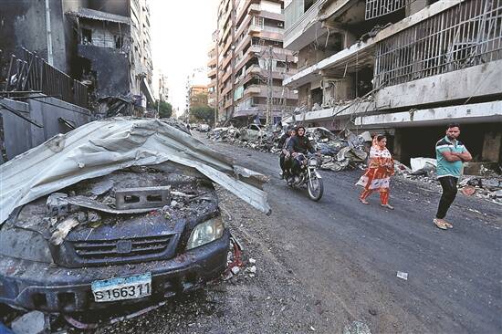 这是4月9日在贝鲁特拍摄的遭以色列空袭摧毁的汽车和房屋 新华社发 |