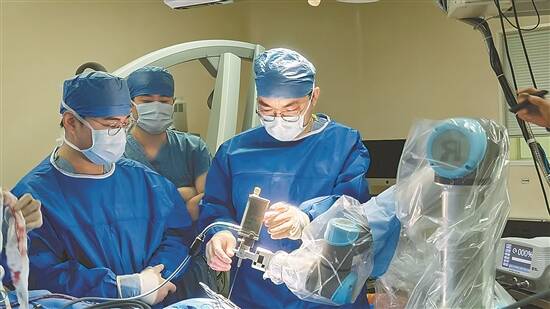在机器人辅助下进行脑深部电刺激(DBS)手术 广东省人民医院供图 |
