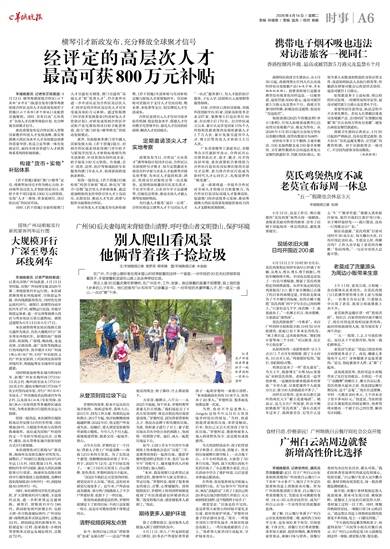 文/羊城晚报记者 侯梦菲 柳卓楠 图/羊城晚报记者 宋金峪 在广州,不少登山爱好者在周末登山时经常能看到这样一个画面:一对年轻的90后夫妇用背架背着孩子,手里提着蛇皮袋在山路上走走停停捡垃圾。 男主人是90后重庆青年罗德柯,在广州念书、工作、安家。身边跟着的是妻子胡雯雯,背上背的是1岁多的儿子年年。他们的账号“kk和年年”记录着这一切:一对年轻的夫妻带着儿子,把一座又一座山,一点点“擦”干净。 从登顶到背垃圾下山 罗德柯的故事,原本不是从捡垃圾开始的。他练过体育,喜欢大山。2015年,因为工作太累,他重拾运动和爬山;2017年起,他开始断断续续跑越野赛;2022年后,他又把户外变成生活。结婚后,爱人胡雯雯也被他带着爬山锻炼。年年八九个月大起,就被放进背架,跟着父母一起徒步、登山。 去年6月份,罗德柯定了一个目标:背着儿子登上广州最高峰——海拔1210米的天堂顶。为了实现这个愿望,他断断续续地训练了半年。终于,2025年12月,这个目标实现了。一家三口站在天堂顶上,白云缥缈,景色秀美,罗德柯却高兴不起来。 “2022年我们去天堂顶的时候,感觉没有什么垃圾。”他说,这次再来感觉垃圾变多了。近年来,户外活动成为潮流,部分热门线路涌入了不少户外爱好者,也留下了一些垃圾。 登顶的成就感还没捂热,罗德柯就制定下了新的目标:不再只是征服一座山,而是尽可能地清理干净爬过的山。 清野视频获网友点赞 如今,他的目标已经从“背娃登顶”变成“无痕山野”——这是户外圈更高的理念:除了脚印,什么都别留下。 天堂顶、帽峰山、六片山……从2025年底起,每个周末,罗德柯都带着妻儿往山里跑。“我们最近去了4次天堂顶清野,休息点附近的垃圾需要清理。”罗德柯说,因为背着背架和儿子,他没办法蹲下和弯腰捡垃圾。为此,他和妻子进行了分工:妻子把垃圾从草丛中捡出来扔到路上,他再统一捡到袋子里。最后,两人一起把垃圾运下山。 如今,已经1岁8个月的年年看到地上的水瓶也会说出“垃圾”二字,还能帮助他们一起捡垃圾。随着罗德柯把清野过程拍下来,发在“kk和年年”的账号上,越来越多的人开始关注他们、加入他们。 “本来,我发视频只是希望记录清野过程,顺便呼吁大家文明登山、带走垃圾。”罗德柯说,收到了很多网友的留言、点赞,心里暖暖的。清明假期前后,罗德柯上传的清野视频还收到了中国香港演员钟镇涛的点赞。“我觉得很兴奋,感觉被很多人看到了。”他说。 期待更多人爱护环境 除了点赞和留言,还有很多人直接加入到了清野的队伍中。 4月11日,周六,广州龙洞街道石门禅院,20多名户外爱好者带着孩子一起和罗德柯一家爬山清野。“本来跟我报名的有10来个人,结果来了20多人。”罗德柯说,很多面孔他都是第一次见。 当然,也有不少是老熟人。Jangels是他今年元旦在天堂顶徒步时结识的朋友。“当时,他看到我背着娃捡垃圾,非常受触动。后来,他自己又去天堂顶清了好几次垃圾。”罗德柯说,能影响更多人加入到清野队伍中,还是挺有成就感的。 当天的清野活动中,孩子们带着钳子和袋子,捡垃圾、拾瓶子。捡来的垃圾被绑在滑草板上,一点点拖下山。4个小时的活动,大家捡了50多斤垃圾。“妈妈,我下次爬山再也不乱扔垃圾了。”小志愿者小麦说,自己在活动中学会了爱护环境,以后还要来参加志愿活动。 在外地,也有很多网友开始加入到清野行动。在“kk和年年”的评论区,网友“念起即显”上传了1张自己和20多包垃圾合影的照片并留言:天天刷到你们清野,这个假期终于动手了! 胡雯雯说:“垃圾是捡不完的。还是希望大家登山的时候不要乱丢垃圾,更好地爱护环境。”罗德柯对妻子的话感同身受。“现在,一些徒步团队只管带队徒步,环保宣传却没有跟上。一些垃圾就被留在了山上。”他希望大家共同行动起来,守护绿水青山。