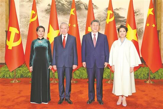 新华社电 4月15日上午,中共中央总书记、国家主席习近平在人民大会堂同来华进行国事访问的越共中央总书记、国家主席苏林举行会谈。 习近平再次祝贺苏林当选越南国家主席。习近平指出,你当选越南国家主席后第一时间到访中国,体现了你对发展中越关系的高度重视。相信在以苏林同志为首的越共中央坚强领导下,越南必将坚定走好社会主义道路,朝着建党建国“两个一百年”奋斗目标砥砺奋进。无论国际形势如何变化,中方始终将越南作为周边外交优先方向,愿同越方秉持初心、赓续友谊,团结协作、相互支持,继续按照“六个更”总体目标,高质量推进全面战略合作,加快构建更高水平具有战略意义的中越命运共同体,为推动构建人类命运共同体作出更大贡献。 习近平强调,党的领导是社会主义的最本质特征和最大优势。捍卫社会主义制度和共产党执政地位,是中越两党最大的共同战略利益。双方要保持高度的战略清醒和强大的战略定力,始终坚定道路自信和制度自信,坚持改革不改向、变革不变色。 双方要充分发挥党际渠道的特殊作用,密切高层交往,巩固政治互信。要用好高层会晤、理论研讨、干部培训、对口交流、地方合作等机制,执行好新一轮中国共产党与越南共产党合作计划,深入开展治党治国理论和经验交流互鉴。要把维护政治安全摆在首位,用好外交、国防、公安“3+3”战略对话机制,持续加强对两国青年一代的理想信念教育。 双方要同心协力,携手同行现代化道路。要加快发展战略对接,优先推进基础设施互联互通。要加强人工智能、半导体、物联网等新兴领域合作。中方欢迎更多越南优质产品进入中国市场。双方要继续加强旅游、文化、媒体、教育、卫生、体育等友好交流合作,促进两国人民相知相亲。我愿同你一道宣布启动2026-2027年“中越旅游合作年”。 双方要高举和平、发展、合作、共赢旗帜,共同反对单边主义、保护主义,维护全球自由贸易体制和产业链供应链稳定畅通。要携手践行全球发展倡议、全球安全倡议、全球文明倡议、全球治理倡议,共同应对全球性挑战。今年是中国-东盟建立全面战略伙伴关系5周年,中方愿同地区国家加强协调和配合,推动构建更加紧密的中国-东盟命运共同体。 苏林表示,这是我当选越南国家主席后首次出访,也正值习近平总书记、国家主席去年对越进行历史性访问一周年,充分反映了总书记同志所说的“邻里越走越亲”。越方感谢中国共产党、政府和人民对越共十四大提供的重要政治支持,愿始终同中方赓续传统友谊,推动两国全面战略合作伙伴关系和具有战略意义的命运共同体不断发展。越方祝贺中国胜利完成“十四五”规划并取得历史性成就,相信中方将顺利实施“十五五”规划,不断推进高质量发展和社会主义现代化建设,如期实现第二个百年奋斗目标,并成为世界和平发展的支柱力量和首要动力。 当前越中关系保持积极发展势头,战略沟通密切,国防安全领域从对话进入到务实合作阶段,经贸投资和基础设施合作深入开展,民间交流十分频繁,多边沟通更加密切。 越方珍视习近平总书记同志对越中关系寄予的特殊感情和一贯支持,将坚定把发展同中国关系作为越南的客观需要、战略选择和头等优先,继续支持一个中国政策,愿同中方加强战略沟通和高水平战略协作,提升经贸、投资、铁路等基础设施和旅游合作水平,加强教育、培训、科技、人文和地方合作,更好管理陆地边界和维护海上和平。越方支持习近平总书记同志提出的全球发展倡议、全球安全倡议、全球文明倡议和全球治理倡议,愿同中方一道推动建设人类命运共同体。 会谈后,双方共同见证签署关于党际、公安、司法、经济、产供链合作、海关合作、科技、民生、人力资源开发、媒体和地方等领域多项双边合作文件。 会谈前,习近平和夫人彭丽媛在人民大会堂东门外广场为苏林和夫人吴芳璃举行欢迎仪式。苏林抵达时,礼兵列队致敬。习近平和苏林登上检阅台,军乐团奏中越两国国歌,天安门广场鸣放礼炮21响。苏林在习近平陪同下检阅中国人民解放军仪仗队,并观看分列式。少年儿童手持花束和中越两国党旗、国旗欢呼致意。 当天中午,习近平和彭丽媛在人民大会堂金色大厅为苏林夫妇举行欢迎宴会。 当天下午,苏林还参观了中国共产党历史展览馆。 蔡奇、王毅、尹力、王小洪等参加有关活动。