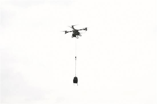 运载无人机进行空中吊运演示 |
