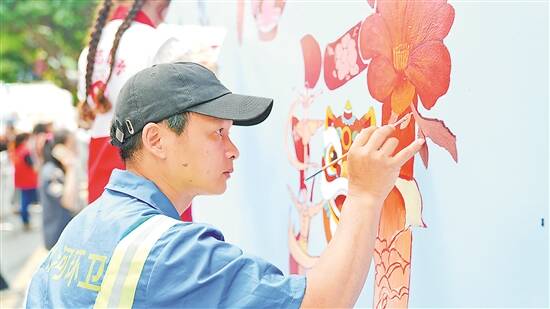 羊城晚报记者 梁怿韬 鄢敏 广州市天河区沙河街道环卫工人骆仕岳,因绘画电箱而“走红”。4月11日起,骆师傅新增一处“新画板”——在环卫工作之余,骆仕岳与沙河街道志愿者一道,共同为街道绘制“大湾鸡”主题墙画。其间,广州杂技团还特邀“‘大湾鸡’之父” 、广州美术学院视觉艺术设计学院院长刘平云到场指导绘画。 近一周过去,在众人的“添彩”下,一只只“大湾鸡”在墙上活灵活现地呈现。4月16日,骆仕岳在忙碌之中接受羊城晚报记者专访。谈起自己学习画画的经历,他表示“终身学习是对自己最大的投资”。 儿时自学画画工作后重拾画笔 “小学六年级时,我参加学校的画画比赛,获得一等奖。”骆师傅表示,因为这段经历,自己对美术绘画的兴趣得到激发,持续自学画画。看到孩子爱好画画,骆师傅的父亲很支持,为儿时的骆师傅购买自学素描书籍。骆师傅按照书籍中的指导,一笔一笔练习素描。 “念完初中之后,我就出来打工了。”骆仕岳说,这让他暂时搁置了绘画爱好。但内心,骆仕岳一直希望有朝一日能够重拾画笔。 2014年,骆仕岳来到广州从事环卫工作。工作之余,他没有忘记自己曾经的绘画爱好。 “2022年,我接触到丙烯颜料,绘画兴趣被重新激发。”骆师傅表示,下班后,他会回到宿舍,看着网上的绘画视频,临摹视频当中的绘画作品,学习视频当中艺术家的绘画手法。学着学着,宿舍里面堆满了自己的画作,同事们也因此知道了骆师傅的爱好。 向“‘大湾鸡’之父”学画“大湾鸡” 2022年到2026年,骆师傅一直都在自学画画。 骆师傅所工作的天河区沙河街道,自2024年以来紧扣省、市、区“百千万工程”和“绣花式城市治理”相关工作部署,提升辖区市容环境。2026年初,沙河街道启动“扮靓电箱计划”,动员有美术功底的志愿者用绘画美化街道的电箱。 知道骆师傅有美术功底,同事们纷纷鼓励骆师傅报名。骆师傅于是拿起画笔在街道范围的电箱上进行绘画。没多久,有市民发现骆师傅身穿环卫工服画电箱,拍下他作画的场面并上传社交媒体,被羊城晚报·羊城派客户端注意到并率先报道。骆师傅的故事,因而被更多人知晓。 “直到现在,我还在不断学习,提升绘画技能。”骆师傅说,4月11日起,他开始参与街道的“大湾鸡”墙画绘制任务。相比此前自己画在电箱上的木棉、舞狮,“大湾鸡”的墙面面积比电箱要大很多,骆师傅需要重新学习并适应。好在街道方面不仅动员了街道内的志愿者帮忙一起画,沙河街道内的广州杂技团还特邀“‘大湾鸡’之父” 广州美术学院视觉艺术设计学院院长刘平云到场指导。 “在刘平云教授的指导下,我的绘画水平继续得到提升。”骆师傅表示,刘平云向自己传授了“大湾鸡”的绘画技巧,并鼓励自己“平凡人也能放出光彩”。 鼓励大家找到爱好并努力学习 “做好环卫工作,持续自学画画,这两件事,都帮助我更好地美化广州。”骆师傅表示,环卫工人有着“城市美容师”的美称,画画也能美化城市,两者都是“美”,都能提升广州的城市形象。 “参与画电箱及画墙画以来,我发现沙河街道有着浓厚的学习氛围。”骆师傅表示,有时候在街头画画,会有家长带着孩子过来,让孩子跟他学画画。与骆师傅一起画墙画的志愿者们,也彼此相互学习绘画技巧。这些细节,让骆师傅看到了沙河街道的美好。 “终身学习是对自己最大的投资。”骆仕岳表示,希望社会上因学业、事业遇到阻力的人们,找到自己的爱好,持续培养对这一爱好的学习兴趣。说不定有一天,这项爱好就能够派上用场。