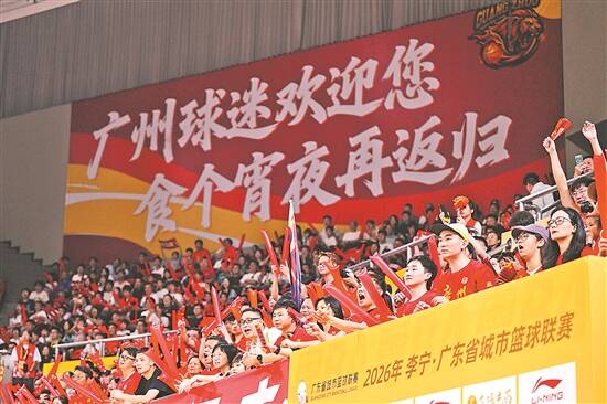 羊城晚报讯 记者周方平、郝浩宇报道:4月18日,2026广东省城市篮球联赛(以下简称“粤BA”)第四轮战幕全面拉开,10场比赛精彩各异。深圳队、东莞队、中山队分别战胜各自对手,保持不败。阳江队经过双加时险胜对手,取得联赛首胜。惠州队、梅州队、汕尾队和肇庆队目前尚未一胜。 当天,广州队继续“坐镇”天河体育馆,主场迎战肇庆队。比赛开始后,广州队逐渐打出主场气势,并在第三节主攻篮下,攻守强度加大,连续打出攻击波,最后以96比48大胜肇庆队。 相较于比赛过程,本场广州队的主场氛围可谓是“拉满”。如果说开场时的旗阵、粤剧表演是“文戏”,那么,广州观众震耳欲聋的呐喊则是摄人心魄的“武戏”,喇叭、充气棒、鼓点、口号声织就的声浪让整个天河体育馆成了粤BA最难攻克的主场。 相关报道见A3