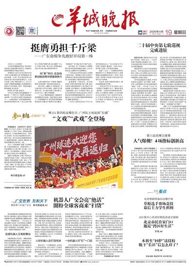 中共广东省委主管、主办 羊城晚报社出版 1957年10月1日创刊 2026年4月19日 丙午年三月初三 星期日 责编/袁婧 美编/郭子君