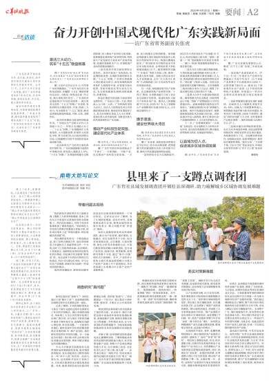 广东是改革开放的排头兵、先行地、实验区,在中国式现代化建设大局中发挥举足轻重的作用。去年11月,习近平总书记亲临广东考察,指引广东科学谋划未来5年的目标、任务和举措,体现走在前、作示范、挑大梁的责