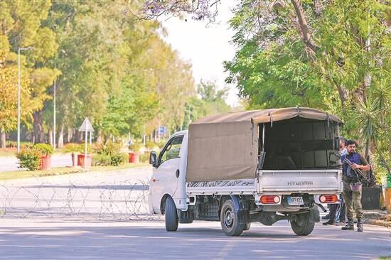 4月19日,在巴基斯坦首都伊斯兰堡,安全人员在一处布有路障的路口执勤 新华社发 |