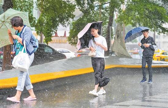 4月23日,广州市民在风雨天气中撑伞出行 羊城晚报记者 梁怿韬 摄 |