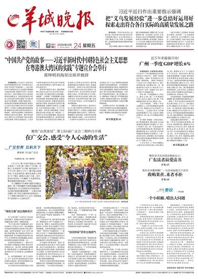 中共广东省委主管、主办 羊城晚报社出版 1957年10月1日创刊 2026年4月24日 丙午年三月初八 星期五 责编/徐雪亮 美编/肖莎 校对/彭继业 报料