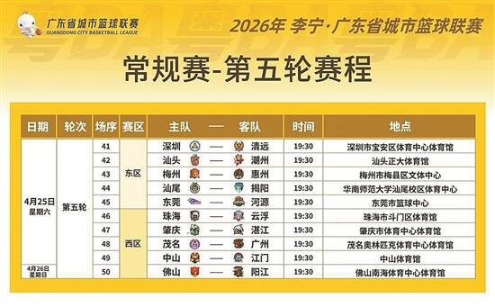 2026广东省城市篮球联赛(粤BA)即将展开常规赛第五轮的角逐,除佛山队主场对阵阳江队的比赛将于4月26日晚进行外,本轮其余九场比赛都将于25日19时30分同步开打。本轮的焦点战是东莞队主场对阵河源队的交锋,深圳队和中山队能否延续全胜势头同样值得期待。 东莞VS河源 冠军球队直接对决 东莞队主场对阵河源队的比赛是本轮的焦点对决,前者是广东省男篮联赛的十冠王得主,后者则是上赛季广东省男篮联赛的新科冠军。在上赛季的比赛中,河源队正是在决赛中击败了东莞队,打破了广东篮坛霸主东莞队对于省联赛长达十年的垄断。此番两队在粤BA常规赛相遇,自然会擦出不一样的火花。 目前少赛一场的东莞队取得三战全胜的战绩,而河源队在首轮不敌深圳队后于后三轮取得全胜。两队代表着目前广东草根篮球的最高水平,作为CBA广东队的主场,东莞篮球中心又将见证一场粤BA的巅峰对决。 深圳VS清远 东区榜首球队盼连胜 粤BA前四轮战罢,深圳队以4战全胜领跑东区积分榜。深圳队在本赛季首战便击败强敌河源队,展现出强大的竞争力,随后更是连赢三场,巩固了自己的榜首位置。而清远队则取得1胜2负的战绩,值得一提的是,清远队在本赛季取得的唯一一场胜利正是在客场击败惠州队,此番做客深圳队主场,清远队显然有更多的想法。从阵容实力上看,深圳队有一定优势,如果他们能赢下比赛,将继续占据东区榜首的宝座。 中山VS江门 “冠军牛”有望一路狂奔 同样取得四战全胜战绩的还有西区的中山队,在赛季开始后,中山“冠军牛”状态不俗,连克广州、茂名、阳江和佛山等强敌,目前领跑粤BA西区积分榜。本轮中山队将做客对阵江门队,江门队在本赛季取得两胜两负,在前两轮不敌佛山和珠海两支强队后,江门队在随后两轮连续击败肇庆和茂名队,展现出不错的调整能力。 文/羊城晚报记者 郝浩宇 图/广东省篮协提供