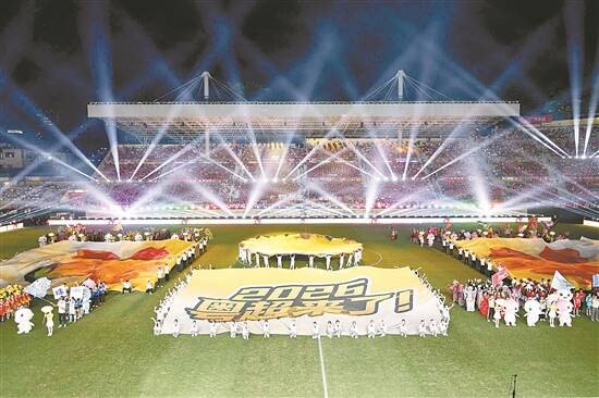 羊城晚报讯 记者柴智、苏荇、郝浩宇、龙希、吕航报道:4月25日晚,2026年广东省城市足球超级联赛(以下简称“粤超”)在南粤足球“福地”广州越秀山体育场拉开战幕。粤超开幕式以光影为笔,勾勒出一幅兼具足球情怀、岭南风韵与科技质感的生动画卷,“粤影”“粤韵”“粤光”三大篇章徐徐铺展,为现场球迷呈现一场震撼人心的视听盛宴。 “原谅我这一生不羁放纵爱‘入球’!”歌手“东山少爷”与广东籍乒乓球运动员林高远带领现场万名球迷合唱《海阔天空》,将足球激情与城市情怀推向高潮。这一夜,被誉为“世界第一运动”的足球化作城市纽带,21城梦幻联动,专属于南粤的全民足球狂欢正式启幕! 开幕式上,作为广东足球“威水史”的亲历者和见证者,容志行、欧伟庭、麦超、区楚良、卢琳5名广东足球名宿,与青少年球员完成庄重的传承交接,完成跨越代际的足球精神传递,唤起无数球迷久违的足球记忆。 在独具特色的说唱节奏中,21城代表队方阵在“大湾鸡”的引领下依次入场,广东各地的独特魅力逐一绽放。每座城市专门组建特色助威团,结合本土文化地标、文旅资源、地域特色打造专属展示内容,搭配定制城市说唱加油表演,真正实现“一城一韵”“一队一景”。各助威团深挖地方美食、传统非遗、特色产业等本土元素,打造21个极具辨识度的特色名场面,既生动展现各地足球运动发展风貌,也全面释放南粤多元地域文化魅力,让足球成为联结城市、凝聚民心的重要纽带。 “城”就荣耀、一战“城”名!当巨型木棉花绽放光芒,“2026粤超来了”巨型主题喷绘缓缓展开,标志着粤超正式拉开大幕。烟花璀璨的夜空,勾勒出大湾区足球融合发展的美好图景。 揭幕战参赛两队广州队与江门队有序入场后,全场肃立,高唱国歌。嘹亮的歌声在越秀山体育场回荡,现场气氛庄重而热烈。 相关报道见A2、A3
