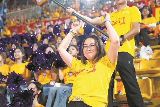 江门队球迷沉浸在激烈的比赛气氛中 羊城晚报记者 黄城栋 林桂炎 摄 |