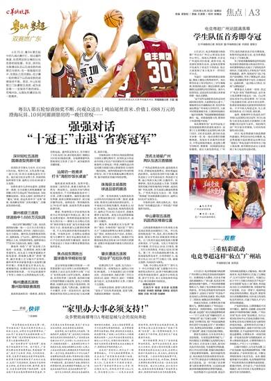 4月25日,粤BA第五轮中的九场比赛开打。经过激烈角逐,东西两区积分榜的分化态势初现轮廓。东区,深圳队击败清远队后以五战全胜的战绩匹马领先;在一场强强对话中,东莞队力克河源队,在少赛一轮的情况下以四战全胜的成绩保持不败。西区,中山队轻取江门队豪取五连胜,成为该区唯一一支保持不败的球队,而梅州队、汕尾队和肇庆队均一胜难求。 深圳轻松五连胜 国潮造型亮眼可爱 深圳队首节便火力全开,打出9比4的开局。暂停归来,主队攻势不减,一波31比16的小高潮迅速拉开分差。此后双方比分交替上升,但深圳队始终掌控节奏,最终以105比89拿下五连胜。 比胜负更令人津津乐道的,是赛前的一幕幕:全市商圈大屏轮番播放“深圳椰子鸡VS清远鸡”的对战动画,为比赛赚足眼球。球员入场时,深圳队牵手“魔丸”球童,清远队则牵手“灵珠”球童,现场解说笑称“灵珠对魔丸”,国潮造型亮眼可爱。 潮州收获三连胜 球迷抽中1.688万元玩具 一场正宗的“潮汕德比”上演。汕头队前四场仅输一场——以5分之差不敌主场作战的河源队,其中有三场得分过百,攻击力强劲。潮州队首战惜败深圳队后,连胜两场,士气正旺。潮州队自开局便稳占上风,全程保持领先,最终客场以77比66力克汕头队,取得三连胜。 赛场外,特色“广货”也惊艳了在场的一众球迷。比赛期间,两队互赠非遗好礼,汕头送上市级非遗潮汕手钩花篮球、澄海狮头鹅IP“澄澄”摆件,融合非遗工艺与城市产业特色;潮州则带来国家级非遗大吴泥塑《潮州印象》、省级非遗无穷食品礼包。更吸睛的是,比赛结束后汕头主场宠粉福利重磅来袭,一位幸运球迷抽中了价值1.688万元的澄海玩具大奖。 梅州遭遇五连败 惠州取得联赛首胜 此前四战两队均一胜难求,此役为首胜而战。惠州队反客为主,首节便打了主队32比18,此后稳扎稳打,顺利以103比83收获比赛。全场赛事惠州队篮板球比主队多了20个,成为取胜的关键因素。 汕尾仍一胜难求 打卡“海胆炒饭长桌宴” 揭阳此前两胜两负,发挥平稳。汕尾前三战均告负,此番主场作战,仍然为一胜而努力。汕尾队开局气势如虹连续得分,7号唐栩赫接连命中三分球,点燃主场激情。揭阳队随后稳住阵脚,陈泽文频频突破得手,双方展开激烈对攻。最终技高一筹的揭阳队以76比67取胜,汕尾队仍然未取得联赛首胜。 赛前,华南师范大学汕尾校区体育中心外围的嘉年华核心区,数十米长桌整齐铺开,阵阵鲜香提前锁住所有人的目光——赛事主办方精心打造的“海胆炒饭长桌宴”成为全场最火爆的打卡点,现场球迷与志愿者们欢聚一堂,千人同吃海胆炒饭的场面蔚为壮观。中场休息时,主场精心安排抽奖与互赠环节:两位幸运观众各获10斤产自红海湾的野生紫海胆,抽奖环节更是送出1吨由丰隆米业赞助的汕尾丝苗米。 焦点战东莞胜出 篮球嘉年华精彩纷呈 这是本轮最受瞩目的较量——省男篮联赛十冠王对阵上届省联赛冠军,河源队上届正是在决赛中击败“十冠王”东莞队而登上冠军宝座的。此番再战,东莞队带着三战全胜、场均得分破百的强悍数据主场迎敌,复仇之火熊熊燃烧;河源队虽在首轮不敌深圳队,但随即豪取三连胜,气势正盛。比赛打得十分激烈,分差一直没有拉开,最后板凳更深的东莞队以89比82力克河源队,保持不败。 中场休息时,在粤BA特别设置的双方球队互赠礼物环节,东莞队送出的是由中国电子信息产业名镇东莞市石碣镇准备的10套电竞三件套,河源队送出的是河源万绿湖万绿云影湖景房10间的一晚住宿权。场外的篮球嘉年华同样精彩纷呈,30个多美食潮玩摊位整齐列阵,集中展销东莞城市特色好物。 珠海获主场首胜 球迷品尝药膳汤 三胜一负的珠海队与两胜两负的云浮队均位列西区积分第二集团,此番对垒,胜者可以跻身西区排名前列。上半场双方打得较为激烈,珠海队以42比36领先。易边再战,珠海队稳扎稳打,最终以75比65力克对手,喜摘本赛季主场首胜。此役主队虽然顺利取胜,但整场比赛分差一直没有拉开,战情十分激烈。 赛场外,珠海赛区充分发挥“体育+”效应,在体育馆广场打造“广货行天下”主题活动暨粤BA体育文创集市,设广货区、本地知名农产品区、美食区、文创区、展车区五大板块。球迷们不仅能现场免费品尝传承18年的鸽王药膳汤,还能在非遗表演中感受大湾区的文化魅力。 肇庆遭遇五连败 “花仙子”拉拉队夺目 比赛过程几乎一边倒,实力高出一筹的湛江队一直领先比分,最终以109比96取胜。上半场就落后20分的肇庆队一直没有放弃,他们在第三节打出29比24,追回一些比分,最后一节继续奋力追分,无奈此前落后太多,只能吞下五连败。 中场休息期间,温情与热烈交织。“花仙子”拉拉队笑容绽放,花球飞舞,为紧张比赛增添一抹亮色。 茂名主场输广州 两队互送沉香腊肠 广州队近期状态火热,进攻端多点开花,若能延续连胜势头,将有望逼近西区榜首。而茂名队同样不容小觑,该队迎回了大学生球员张杰,阵容趋于完整,加之坐拥主场之利,以逸待劳。比赛伊始,茂名队迅速进入节奏,凭借默契传切配合和积极的防守轮转,成功压制广州队攻势,首节战罢以微弱优势领先。广州队毕竟实力高出一筹,凭借“快准狠”的风格逐渐反超比分,最终以84比67反客为主。 中场休息时,两队交换礼品。茂名队向广州队赠送沉香,广州队把广州腊肠作为回礼。 中山豪取五连胜 巩