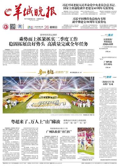 中共广东省委主管、主办 羊城晚报社出版 1957年10月1日创刊 丙午年三月初十 2026年4月26日 星期日 责编/袁婧 美编/郭子君 校对