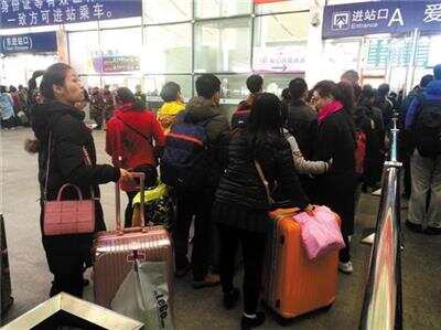 乘客列队等候进站 羊城晚报记者 李晓旭 摄