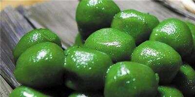 浙江各地清明前户户磨糯米粉、采“清明草”或艾叶做清明果。艾叶我们都见过,“清明草”则俗称绵菜、米菜、佛耳草、鼠曲草,在清明时节萌发出绵绵白毛细叶。人们采摘叶顶,洗净捣烂和以糯米粉。白色的米粉遇到绿绿的艾叶汁或绵菜汁顿时变得通体碧绿,鲜嫩欲滴。