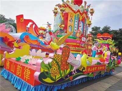 羊城晚报讯 记者景瑾瑾摄影报道:今年的佛山秋色巡游活动将在11月2日、3日连续两晚进行。参加巡游的项目有6辆彩车,43个表演节目。据悉,今年的6辆彩车分别由佛山两家彩灯厂制作,彩车形象不但美观大气,还极具时代韵味。在造型上,众彩车之首的“佛山韵律”,有12盏小彩灯贯穿其中,4条彩凤造型环绕彩车飞舞,车顶上方还设计了双龙戏珠;第二辆彩车名为“腾飞中华”,以地铁线路作修饰,用岭南镬耳屋等元素进行点缀;第三辆彩车名为“扬帆起航”,小蛮腰、祖庙等代表性建筑都出现在上面。其他几辆彩车分别为“弄潮珠江”“情连四海”“活力佛山”,其中一辆上面还添加了“金鸡百花电影节”的元素。