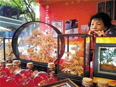 此次参加展示的项目中,不乏国家级非遗项目。比如,福建软木画就是国家级非遗项目,软木画是一种雕、画结合的手工艺品,是利用栓皮栎树的树皮为主要材料,配合通草等物料精雕细镂,设计制成立体和半立体的木画,有色调纯朴、工艺精细、形象逼真、意境深邃、造型新颖等特点。软木画制作完成后,装在玻璃框中,非常精巧美观。软木画多数表现山水风景、亭台楼阁、园林建筑、花草鱼虫等,被誉为“无声的诗、立体的画”。