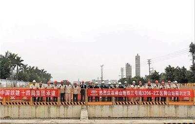 羊城晚报讯 记者欧阳志强、通讯员陈扬摄影报道:12月25日上午10时,随着最后一模车站顶板混凝土浇筑完成,佛山地铁三号线工程3206-2标狮山站主体结构顺利封顶。这标志着狮山站“骨架”已经搭建完毕,接下来将进行二次结构施工及设备安装等附属工作。据了解,狮山站位于南海区狮山工业大道与博爱中路十字交叉口,沿狮山工业大道南北布置,总长度为335米,为地下两层岛式车站。车站设5个出入口,3组风亭,2个安全出口,结构采用明挖加局部盖挖法施工。工程施工风险源多,技术难度大,周边环境敏感复杂。