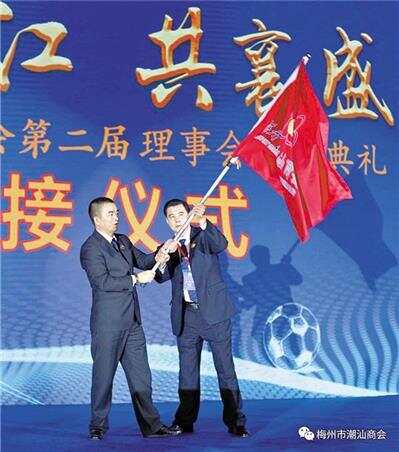 第一届会长蔡列荣与第二届会长苏潮江会旗交接仪式