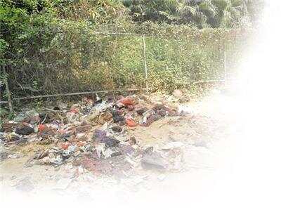 金牛山义冢外,一堆垃圾分外刺眼