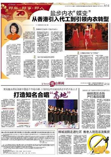 文/羊城晚报记者 张闻 谢红小小一件内衣,到底蕴含着多大的发展可能?一手缔造了美思内衣“王国”的吴艳芬至今仍在思索着,30余年来,正是以她为代表的盐步内衣人一次次的思索,将佛山南海大沥盐步这一个“小”地方打造成全国闻名的内衣名镇。