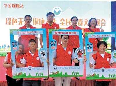 6月3日,园山街道开展了以“绿色无毒 健康人生 全民禁毒”为主题的虎门销烟180周年纪念大型宣传活动。晚上七点,活动在庄严的《禁毒宣誓》中拉开帷幕。快板《我是禁毒宣传员》、歌曲演唱《阳光路上,美丽家园》、诗词朗诵《传承虎门销烟精神,禁毒从我做起》、绝活《川剧变脸》等节目轮番上演,演员们通过不同的表演形式将毒品的危害表现得淋漓尽致,在观众的心中留下了深刻印象。此外,现场安排了多个互动环节,深入普及禁毒知识。现场还设置了禁毒宣传摊位,社区禁毒社工、社区志愿者向居民发放禁毒宣传资料,通过图文并茂的案例,引导现场居民正确认识毒品,不断提高防毒、拒毒的意识。