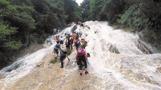 文/图 常思雯所谓溯溪,是由峡谷溪流的下游向上游,克服地形上的各处障碍,穷水之源而登山之巅的一项探险活动。夏天,除了惊险刺激的漂流和去水上乐园玩水,到大自然当中赏瀑、溯溪也是不错的选择。回归自然,美景相伴,呼吸新鲜的负离子空气,快乐就这样唾手可得。最近“秋老虎”发威,广东不少地区持续高温,既可探险、又能避暑的溯溪线路受到游客的喜爱。在此,笔者为大家推荐东莞周边几处知名溯溪景点,带好装备即可到各个溯溪俱乐部报名,来一场说走就走的探险。
