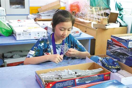 小选手正在制作航海模型