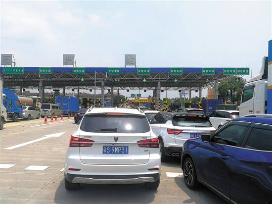 佛山石洲收费站的人工收费车道排起长龙