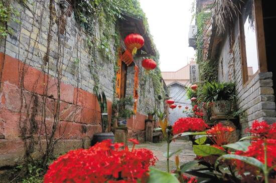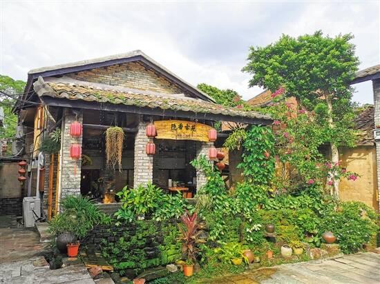 近日,记者走访了古村落中的一间民宿,只见客房大多由旧村屋装修而成,最大程度保留了老房子古朴的外观,使之与周围的古建筑融为一体。房檐上蜿蜒着青翠的爬山虎,青砖小路缀以潺潺流水,院子内鸟语花香,带给游客舒适的感官体验。