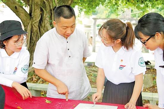 羊城晚报讯 记者彭纪宁,通讯员谭耀广、关炳辉摄影报道:8月23日,在开平市金鸡镇希埠灰塑纪念馆,一群青年学子开心地展示着他们刚制作好的灰塑作品。这是中山大学新华学院的榕树社会实践队员们为期15天社会实践活动成果。在半个月时间里,同学们通过多种形式开展了调研活动,如参观灰塑纪念馆、走访灰塑传人、还亲手制作了灰塑作品。当天,队员们来到锦湖村北闸里苍翠的榕树下,开始灰塑制作实践。在李达维先生的指导下,他们决定制作出榕树叶、团徽、“三下乡”标志等灰塑造型,随着李达维老师的解说和演示,队员们将心中的图景画下,继而用石灰平铺一层。随着石灰层层相叠、彼此垒砌形成雏形。队员们随即用砌刀、刮刀突出表层特征,雕其神、刻其态、着其色。经过细致的制作,一件件栩栩如生的灰塑作品呈现眼前。