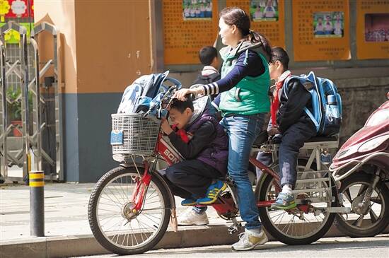 家长用电动车送孩子存在安全隐患 羊城晚报记者 王磊 摄