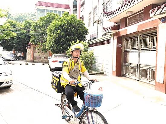 29日14时许,羊城晚报记者在唐家山房路附近看到了忙碌的王建超,在一糖水店取餐后,一分钟不到,他收拾好保温箱,骑上自行车飞速出发,这已是他当天送出的第40单,“每天至少得送到50单,还要尽量保证在十几分钟内送达。”王建超说。