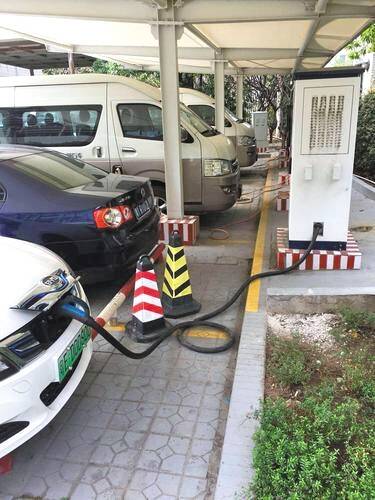 正在充电的纯电动新能源汽车