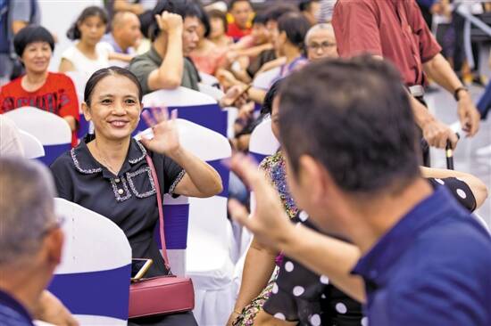当天下午,除了追忆往事,老工友对鳒鱼洲的未来更是充满期待。知道老工友们心系鳒鱼洲的未来,东实集团旗山公司的同事们在聚会中特意安排了一个特别的交流环节,为老工友们介绍鳒鱼洲的发展规划。当讲解人员在台上讲解时,每一位老工友都听得非常认真,还热切地询问建设周期、规划设计等。作为鳒鱼洲曾经的建设者,他们显然对鳒鱼洲未来的发展更为关心,对很多细节都表现得格外关注。
