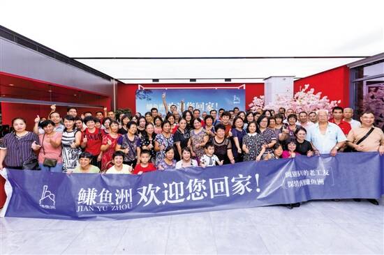 “真想回去看看”“我们聚聚吧”几位工友不约而同地提议,很快得到了更多人的响应。经过商议,大家决定将聚会的时间定在最近的一个周末,地点定在新开放的鳒鱼洲招商中心。接下来,不到7天时间里,有70多名老工友报名参加。负责组织本次活动的谭叔说:“原本只想十来人回来看看,没想到大家反应这么热烈,群里的报名每天都在刷新,最后有70多人报名。这次,应该是我们人最齐的一次聚会了。”