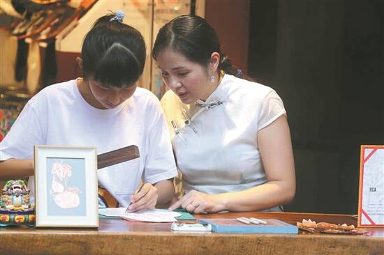 佛山剪纸非遗传承人茹新梅在教学生
