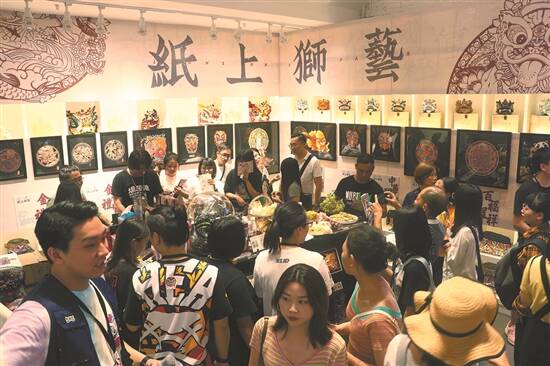 铜凿剪纸与醒狮的结合吸引了广大市民观看