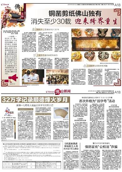 佛山剪纸自古就是南国民间艺术的瑰宝,创造了中国剪纸艺术多项不可替代的纪录,早在2006年已入选第一批国家级非物质文化遗产名录。其中,铜凿剪纸珠光闪闪,鲜明艳丽,别具一格,为佛山剪纸中最上乘者,且在全国乃至全世界仅佛山独有。